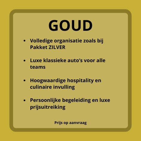 Benoem hierbij je voorkeur in pakket, het aantal auto's/deelnemers & de (mogelijke) datum van je uitje!